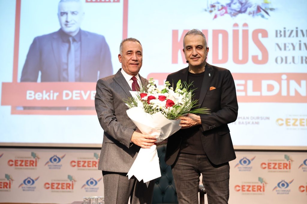 Söyleşinin ardından sahneye çıkan Belediye Başkanı Av. Abdurrahman Dursun, Bekir Develi’ye çiçek takdim ederek, ”Kudüs bizim gönül coğrafyamızın incidir. Müslümanların kutsal mabedidir. Bekir Develi’ye bu samimi sohbeti ve anlattıkları için bir kez daha teşekkür ediyoruz. Orada yaşananlar hepimizin yüreğini yakıyor. En kısa zamanda Filistin’in özgür olduğu günleri görmek ümidiyle”diye konuştu.