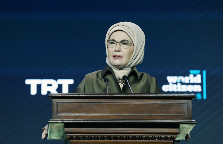 TRT World Citizen Awards’ın 2017’den beri, küresel sorunlara dikkati çeken ve farkındalık oluşturan çok kıymetli bir proje olduğunu, dünyanın neresinde olursa olsun haksızlığa karşı duran, insan onurunu müdafaa eden ve hayatı güzelleştiren kalplerle buluşturduğunu dile getiren Emine Erdoğan, bu girişimin TRT’nin gerçeğe mercek tutmaktan vazgeçmeyen ve her şartta hakikatin yanında duran yayın politikasının da güçlü bir yansıması olduğunu belirtti.