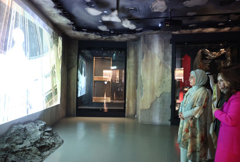 Sarayın müze bölümünü gezen Emine Erdoğan, müzenin mimarisi, yapılış süreçleri ve Irak’ın işgalinden sonra sarayın yeniden inşasına ilişkin bilgi aldı, sarayı ziyaret eden önemli devlet adamlarının fotoğraflarını inceledi.