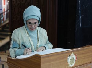 Daha sonra sarayın anı defterini imzalayan Emine Erdoğan, deftere şunları yazdı: “Kuveyt’in sembol yapılarından olan Barış Sarayı Müzesi’ni ziyaret etmekten büyük mutluluk duydum. Günümüzde müzeler, yalnızca nesnelerin sergilendiği alanlar değil, kültürel diplomasinin en etkili unsurlarından ve yumuşak güç kaynaklarından biridir. Barış Sarayı Müzesi, şehre damga vuran mimarisi ve Kuveyt’in tarihine ışık tutan kapsamlı anlatısıyla, yalnızca Kuveyt’in değil, dünyanın da seçkin müzeleri arasında yer almaktadır. Bu güzide hafıza mekânında tarihe tanıklık etmenin, Kuveyt’in zengin kültürünü yakından tanımanın ve ziyaretimiz boyunca gösterdiğiniz misafirperverliğin güzel hatırasını daima muhafaza edeceğim.”